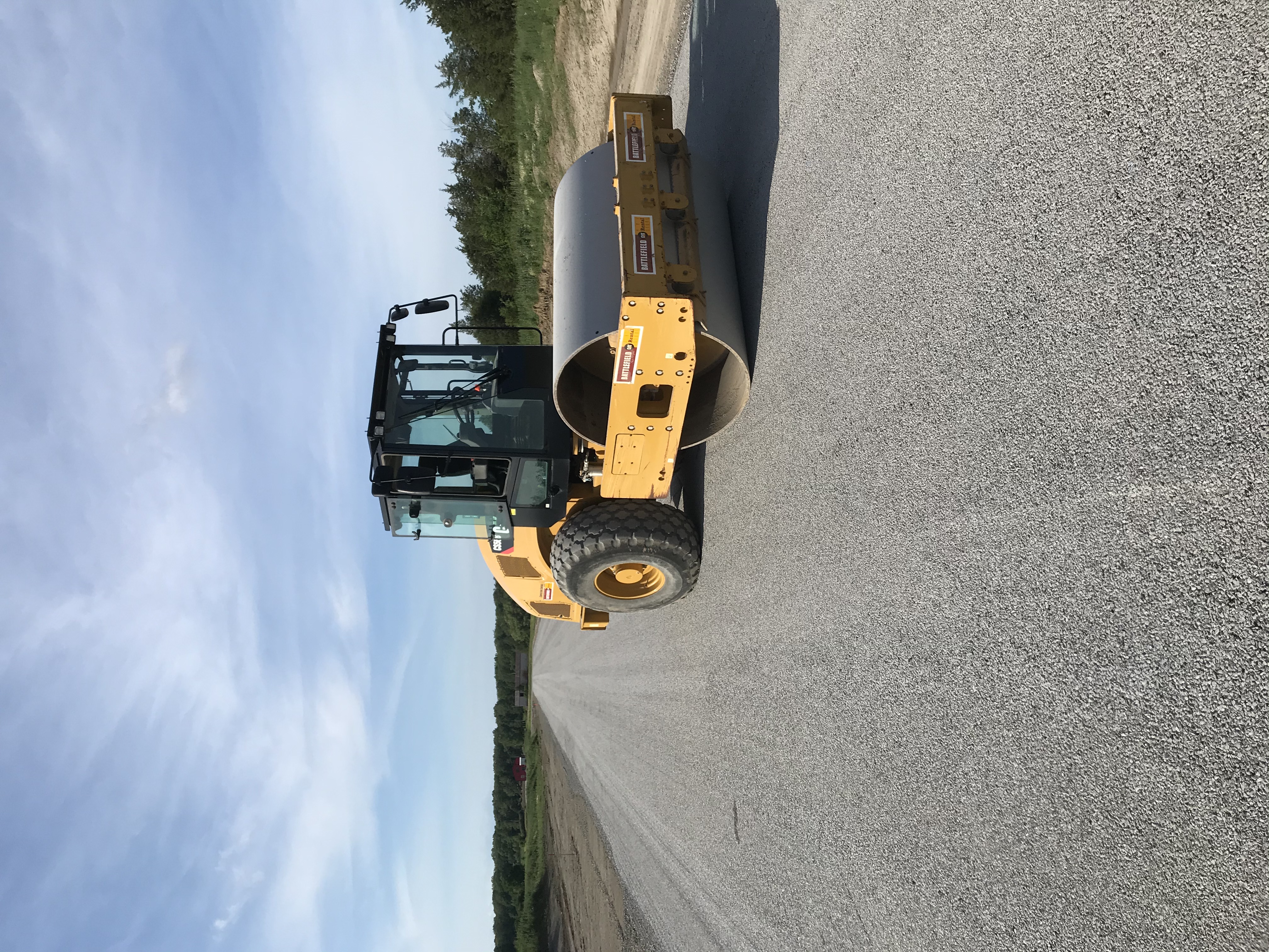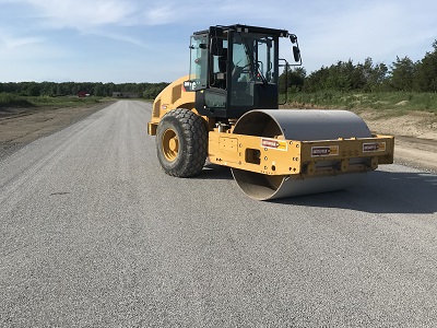 Immediately following stone placement, rolling of material takes place with both a rubber-tired roller and a steel drum roller